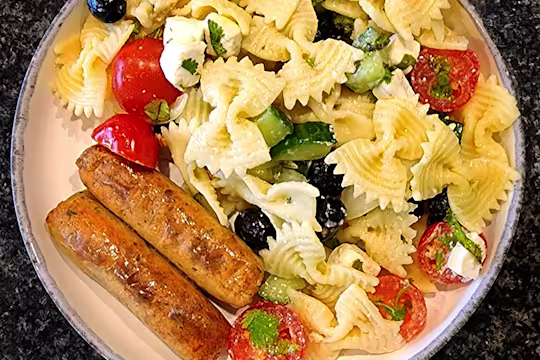 A Mediterranean-inspired, optionally gluten-free pasta salad, enhanced with the savoury addition of Quorn Sausages. Perfect as a side dish and keeps well for 3-4 days.